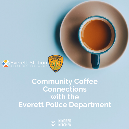 Community Coffee Connections with the Everett Police Dept. Wednesday, January 17, 2024 10:00 AM 12:00 PM Kindred Kitchen 3315 Broadway Everett, WA, 98201 United States (map) Google Calendar ICS Enjoy a fresh cup of coffee and talk with the Everett Police Department and ESDA staff on January 17th to discuss and answer any public safety concerns or questions you may have.